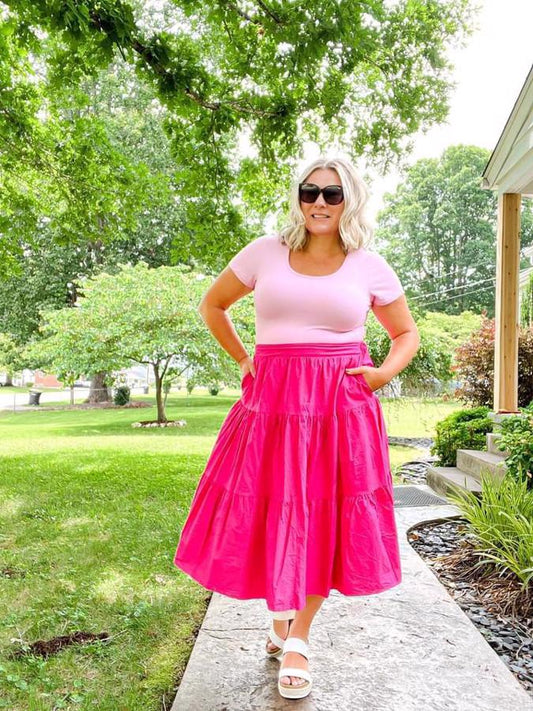 Featuring a chic scoop neckline and an easy two-snap closure, this bodysuit is as versatile as it is trendy. The full coverage bottom ensures you stay comfy and confident all day long. Perfect for pairing with your favorite denim, skirts, or shorts, the Faith Bodysuit effortlessly transitions from casual days to fun nights out. Get ready to fall in love with Faith.