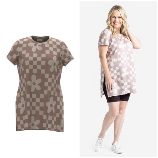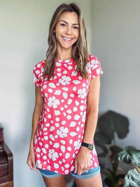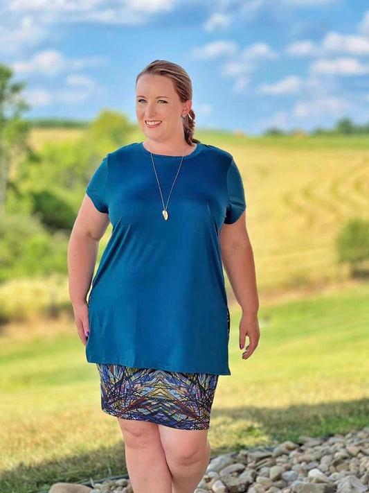 Introducing the Leslie Side Slit Tunic T – your go-to for sweet summer days! This tunic keeps you cool and stylish with a classic crew neckline and breezy short sleeves. The playful side slits add a touch of fun, while the semi-fitted design flatters your silhouette. Perfect for picnics, beach strolls, or just lounging in the sun, Leslie is your new summer favorite!