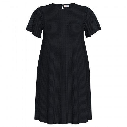 Smocked detail at the shoulder seam with flutter sleeves and keyhole back detail add subtle feminine accents to this piece, while a flowy relaxed shape allows for comfortable all-day wear. The side seam pockets ensure that you can keep your keys and phone with you wherever you go.